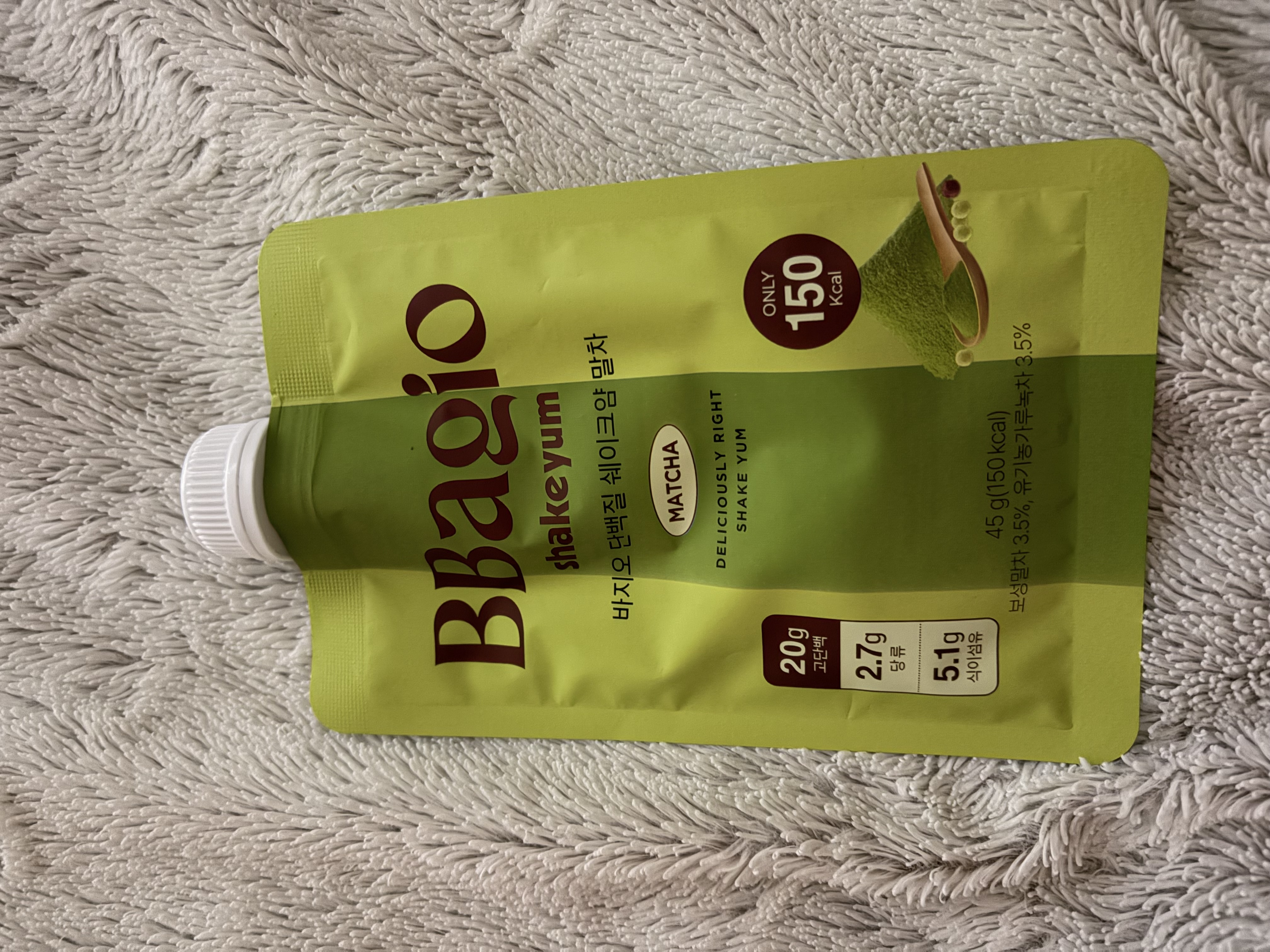 Isolated soy protein (USA), vegetable cream powder (contains coconut oil, foreign origin), tricalcium phosphate, casein sodium, isomalto-oligosaccharide, milk protein concentrate (USA), erythritol, maltodextrin, mixed grain powder (domestic), organic powdered green tea (Jeju Island), milk protein chocolate powder, whole milk powder, milk protein crisp, salt, enzyme-treated stevia (erythritol-based), sucrose (erythritol-based), green tea extract.
