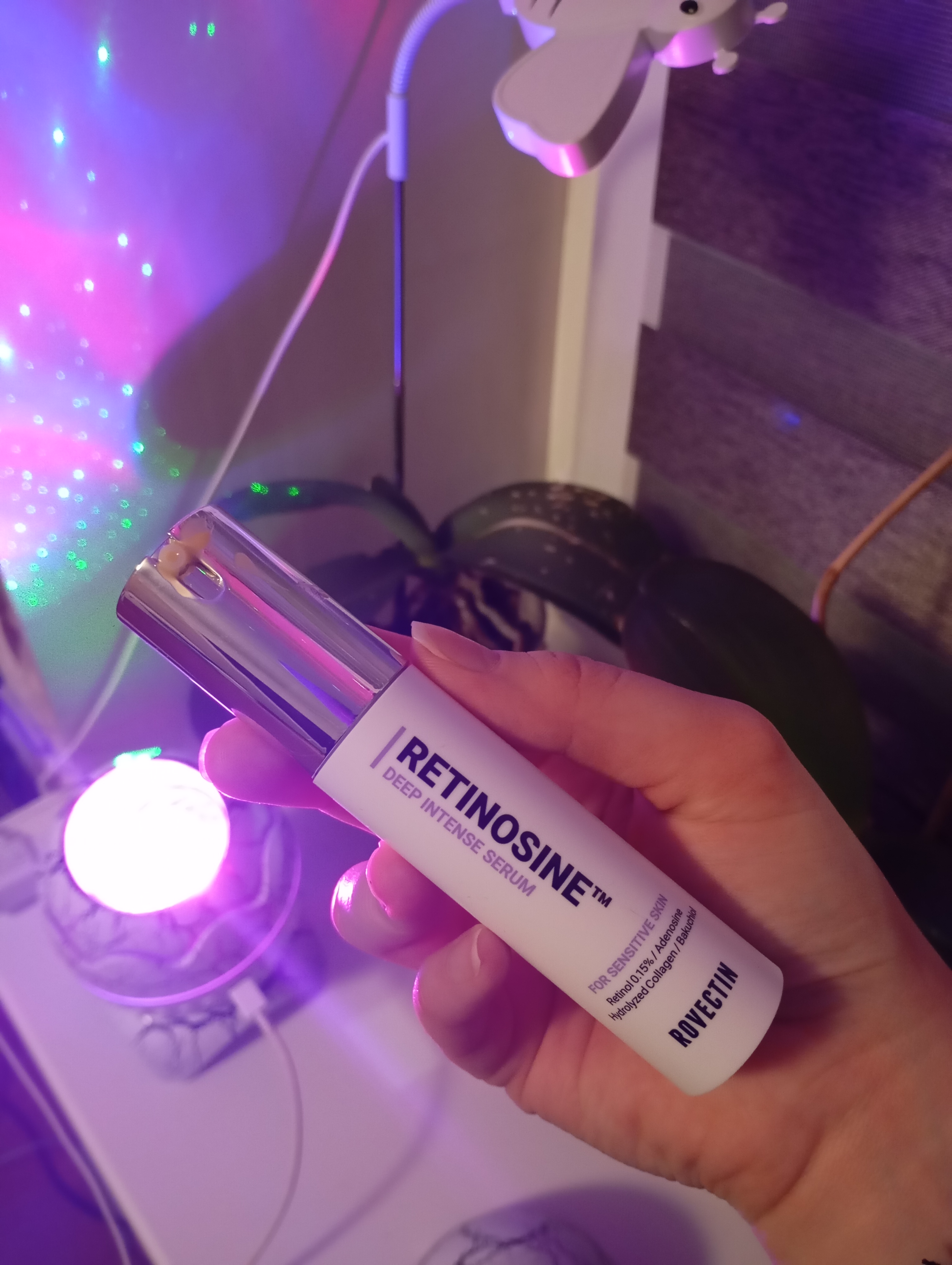 Сочетание ретинола и аденозина стимулирует синтез коллагена и эластина, уменьшая морщины и выравнивая текстуру кожи.